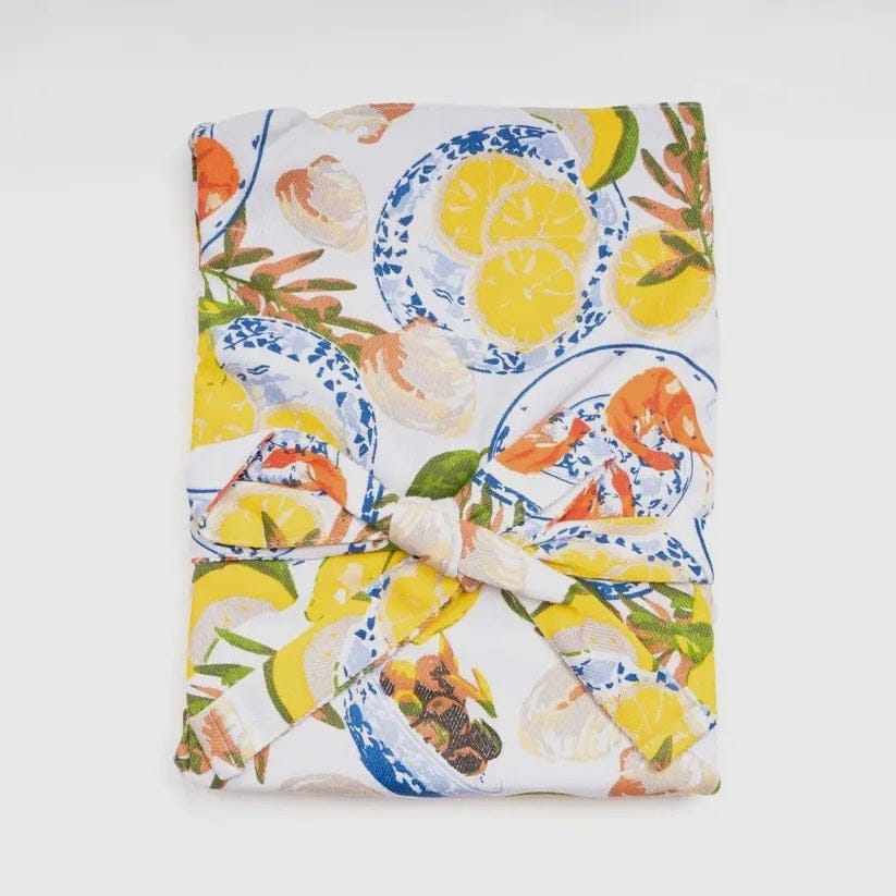 Designed in the USA and imported, the apron is easy to care for—simply machine wash cold on a gentle cycle and tumble dry low. Do not dry clean or iron. Perfect as a cheerful kitchen essential or a thoughtful gift, this apron pairs beautifully with the matching Amalfi Lemon & Seafood Oven Mitt Set and Kitchen Towel for a coordinated coastal kitchen look.